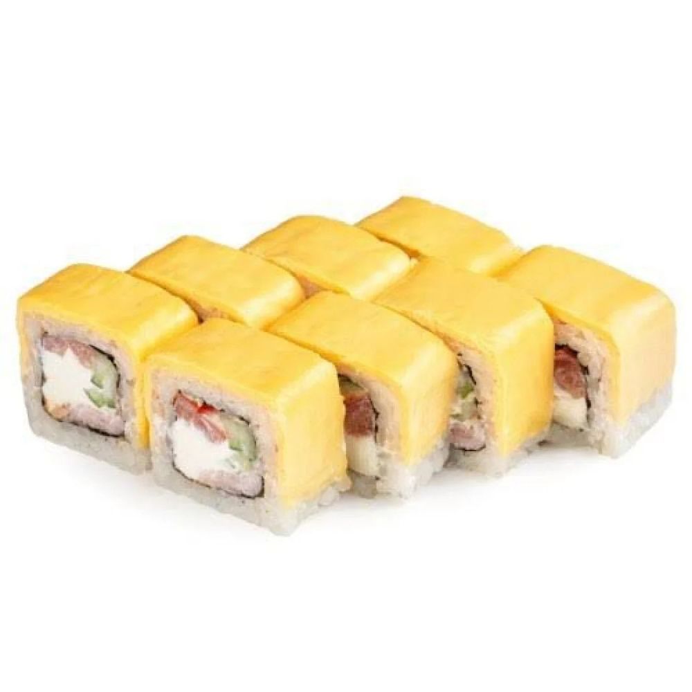 Нори, рис, твердый сыр, бекон, огурец, плавленый сыр, кунжут